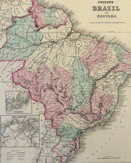 Brazil, Guayana and Rio de Janeiro, Original map by J.H. Colton, 1871