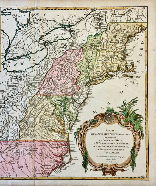 Map of the Eastern United States and Ohio River Valley by Vaugondy, 1755
