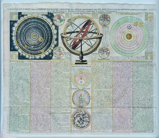 Antique Celestial Chart, Spheres & Astronomy of the Sun, Planet, and Moon Orbits by Henri Abraham Chatelain, 1718