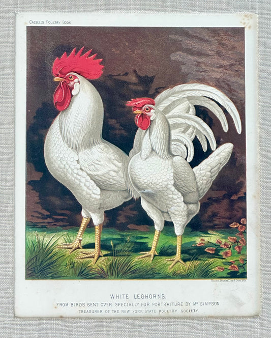 White Leghorn Chicken & Black Polish, Framed Pair By Cassell, 1890