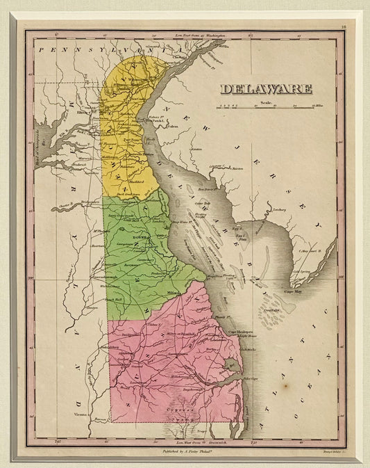 Map of Delaware by Anthony Finley, 1824 (framed)