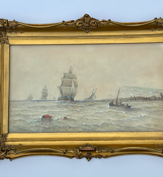 Maritime Watercolor Clipper Ship at Sea by Saint Clair Mulholland