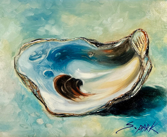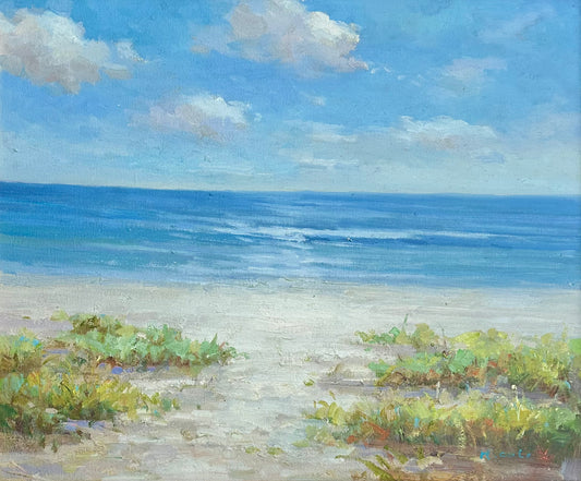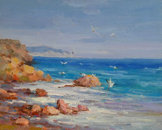 Modern Coastal Original Oil Painting, gold antiqued frame