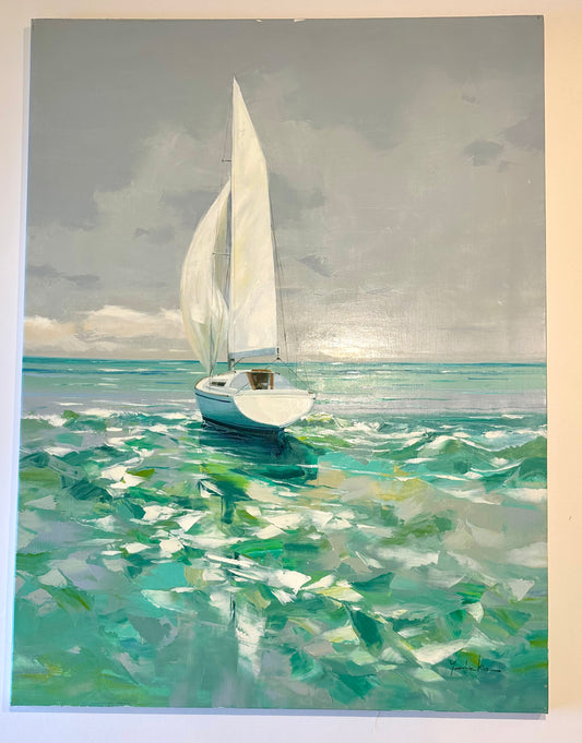 Modern Sailboat Original Oil on Canvas by Yooshin Kim