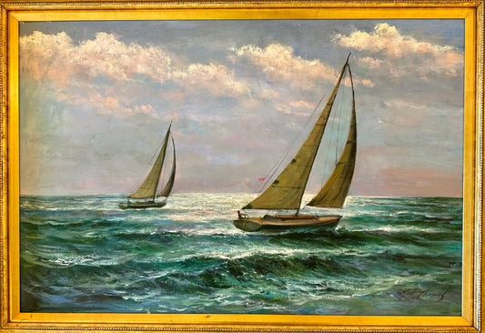 Sailboats, Seascape Original Oil Painting by Matt Thomas