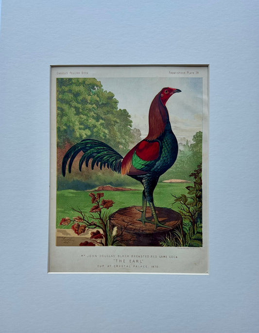 Black Breasted Wild Game Cock Original Chromolithograph Print, 1890