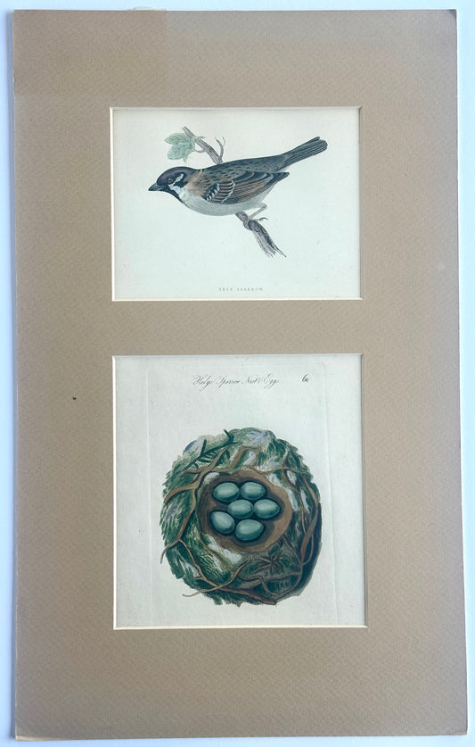 Tree Sparrow Nest & Egg, Original engraving, c. 1880