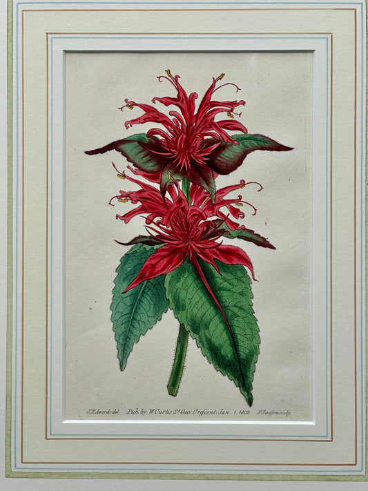 Scarlet Monarda Botanical Flower Original Engraving by Curtis, 1803
