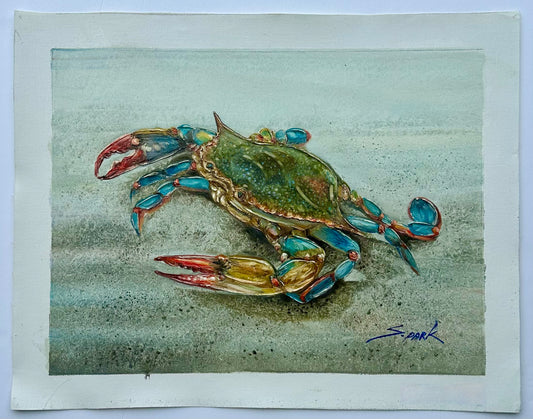 Blue Crab Coastal Oil Painting on Canvas, Unstretched, by S. Park