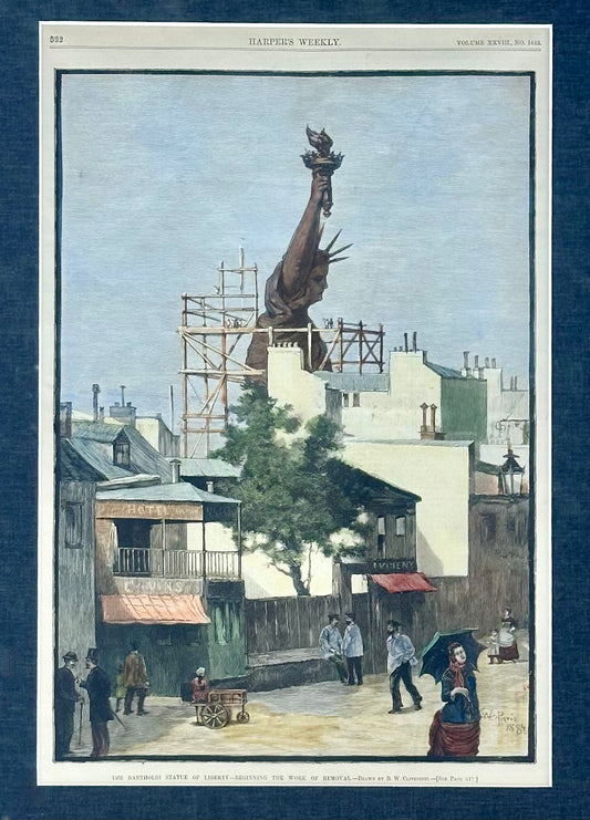 Statue of Liberty Under Construction Framed Print, Antique 1880s Harper’s Weekly