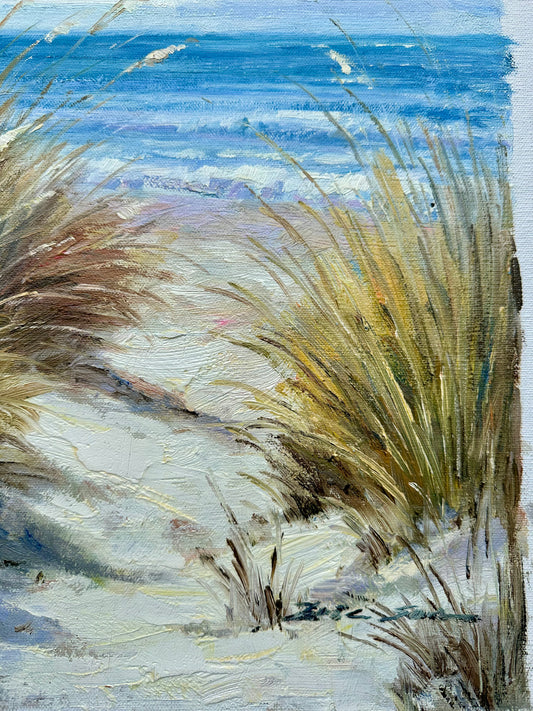 Serene Beach Dune Grasses Scene Oil Painting on Canvas, Unstretched, by Mariella