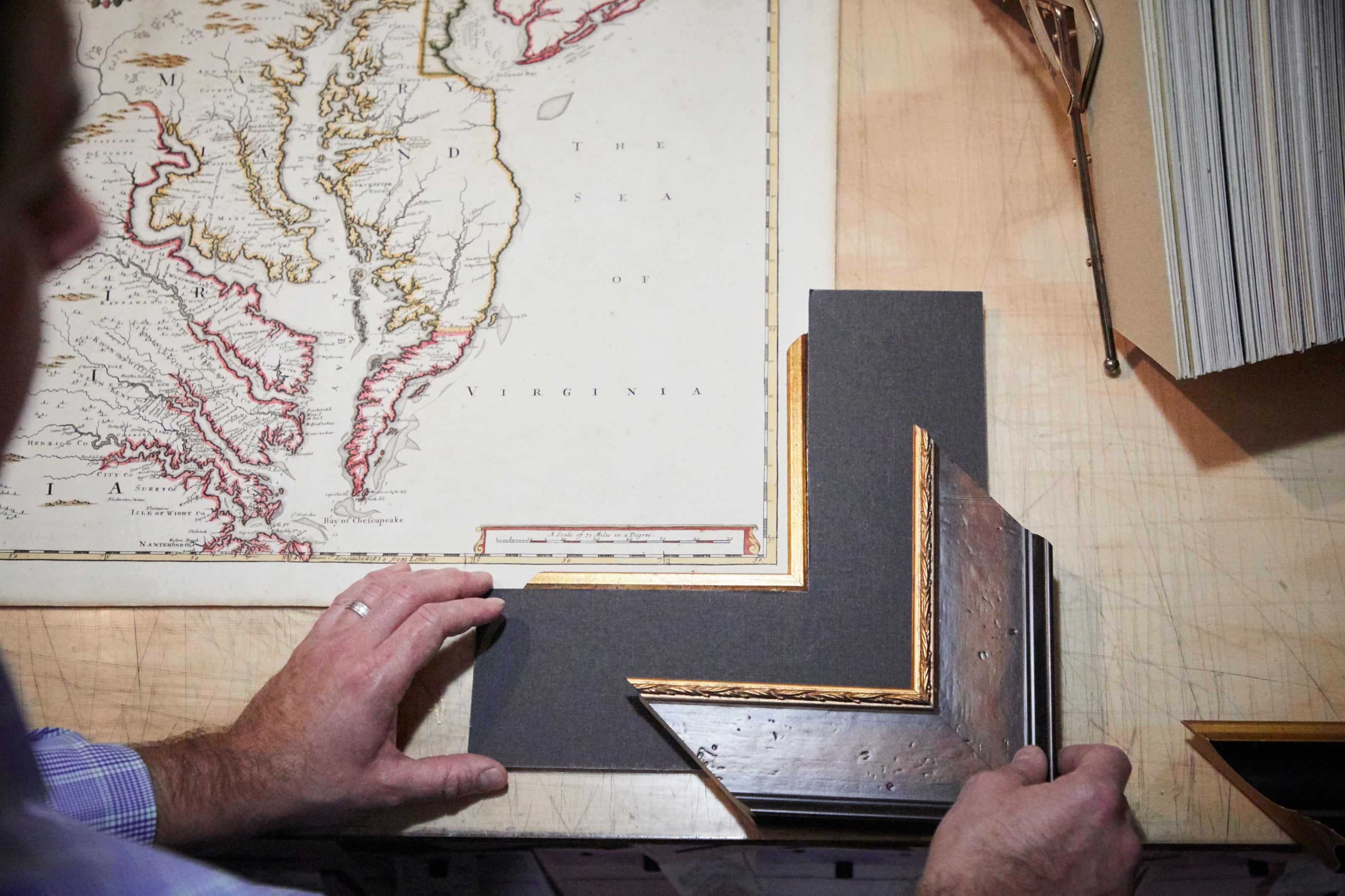 Our print and map restoration services include print cleaning, deacidification, patching, pressing, mold treatment, and retouching. We also remove backings, mats, and tape.