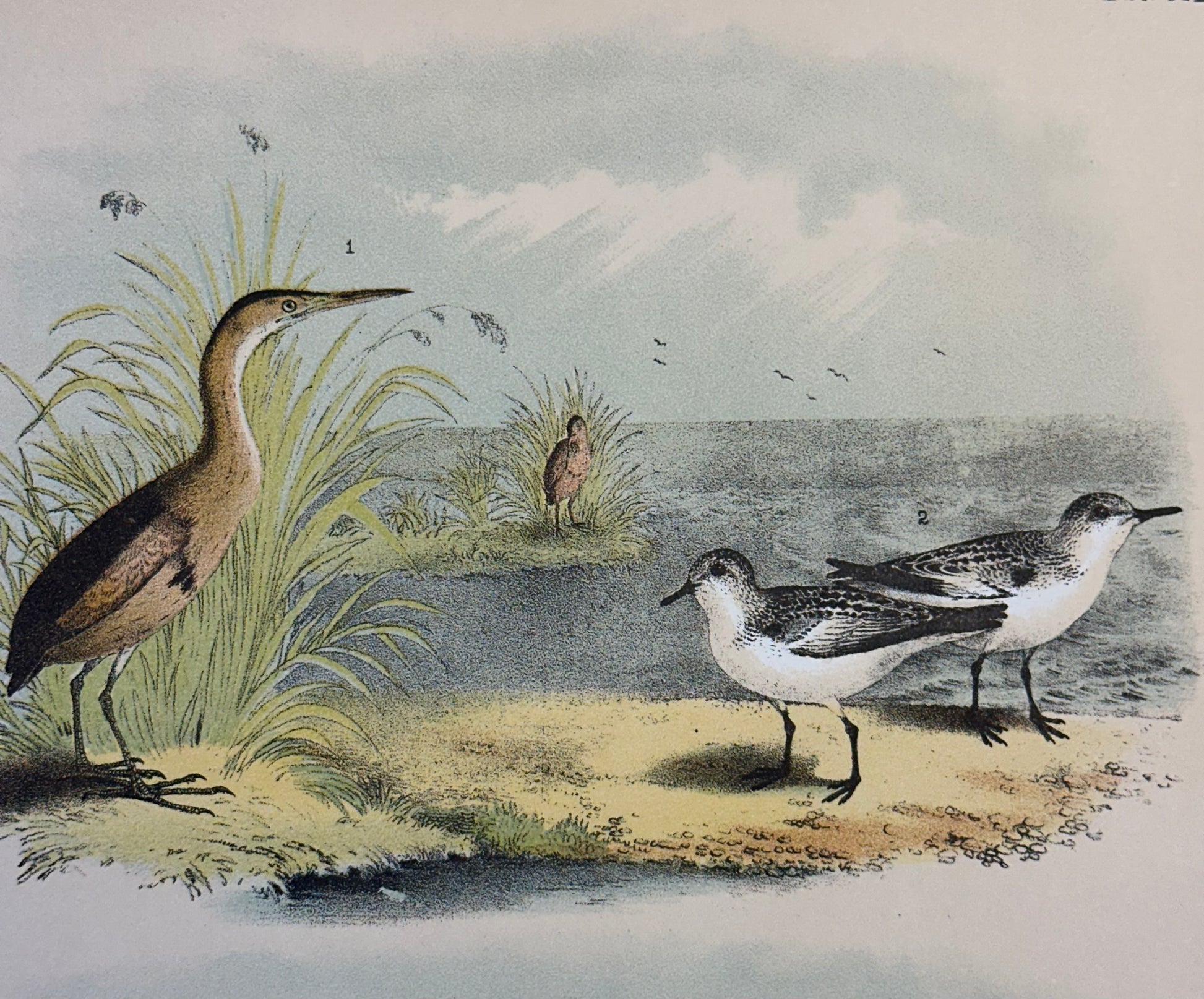 Original chromolithograph from The Birds of America by Jacob H. Studer & Co., 1878. The drawings were by Theodore Jasper, a German American illustrator and physician. These unique birds are beautifully arranged on the page in their natural habitat, accompanied by romantic and luminous backgrounds that are universally appealing. Unframed. Dimensions: 11 x 14 3/4”