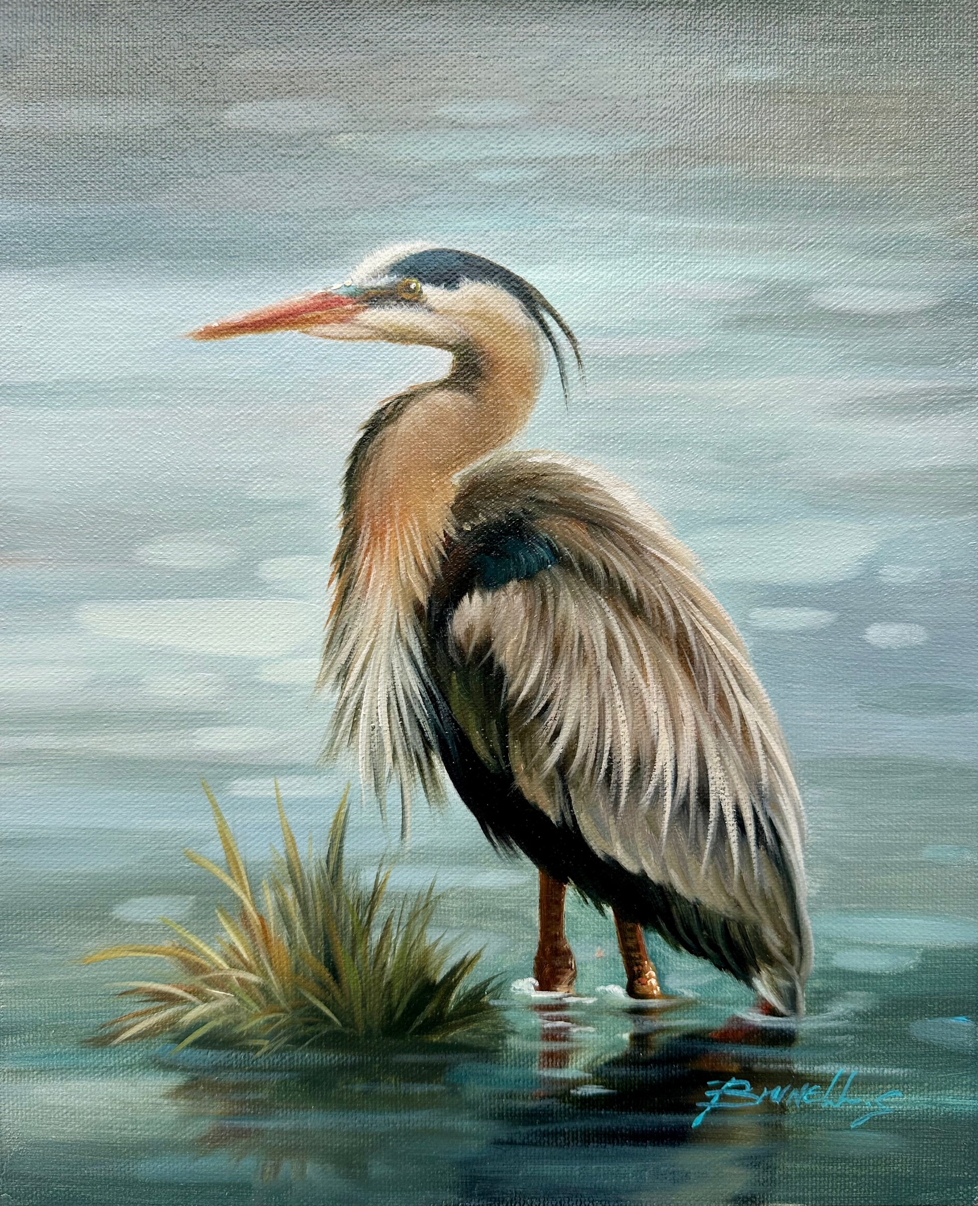 Blue Heron Coastal Original oil on canvas, Unstretched by Brunehylis
