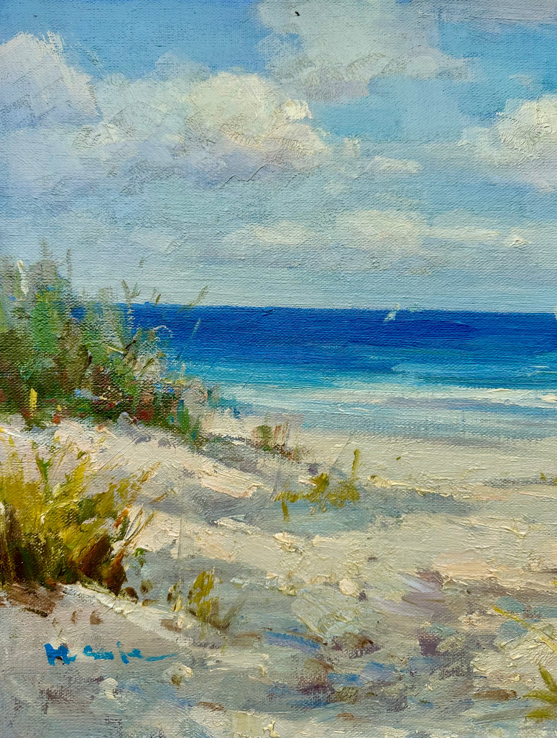 Coastal Beach Dune Seascape Oil Painting on Canvas, Unstretched, by H. Cole