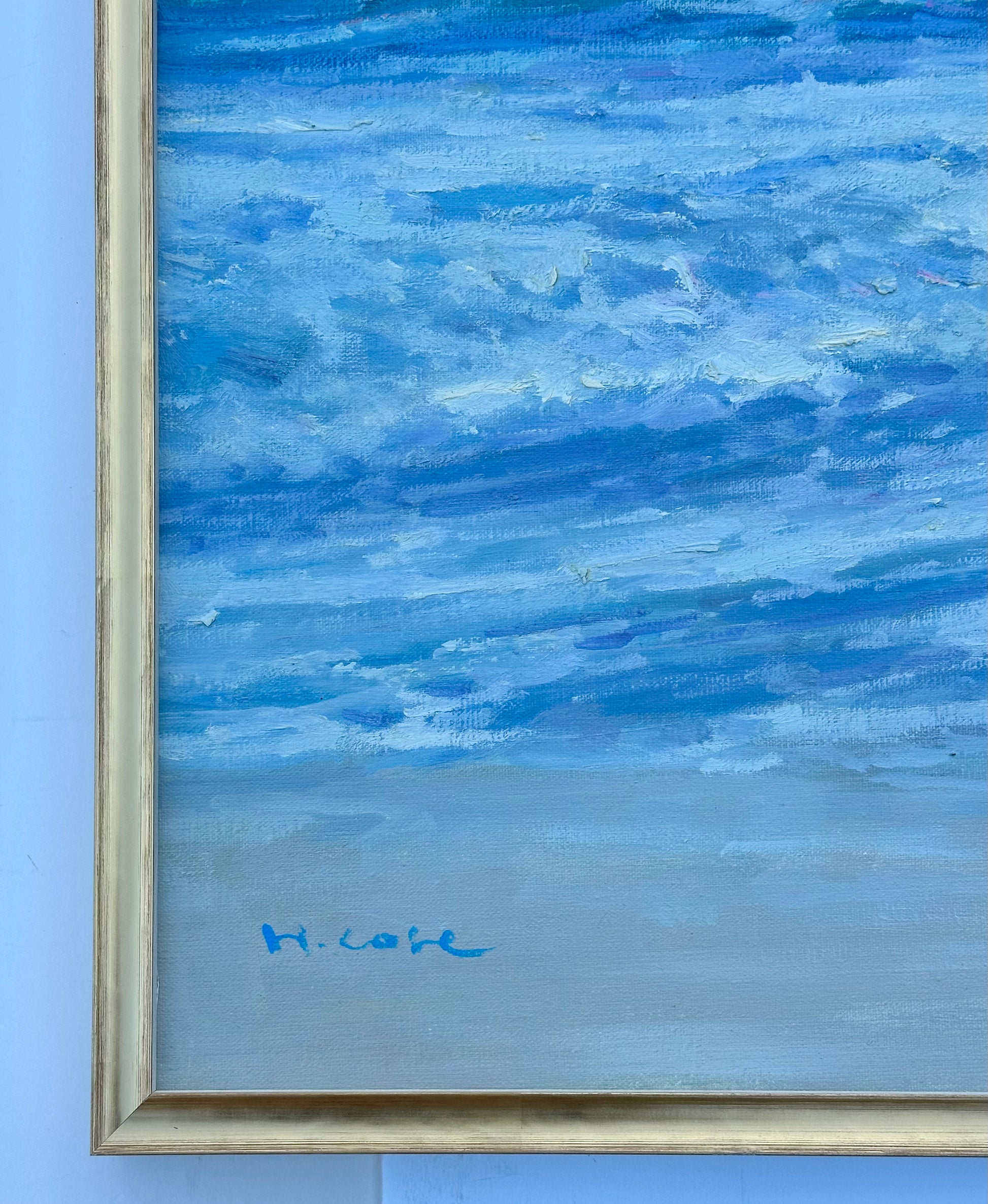 Coastal Waves and & Blue Skies Seascape, Original Oil Painting by H. Cole