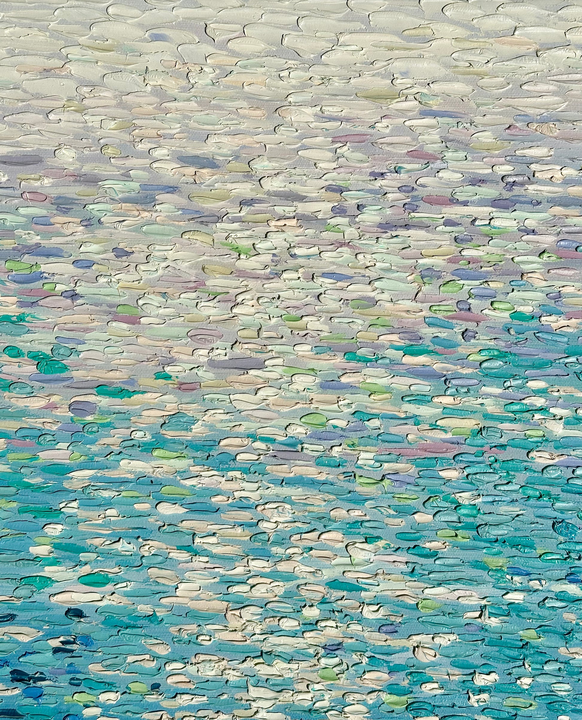 Experience the captivating beauty of this abstract oil painting on canvas by Ryan C., showcasing a stunning waterscape. Utilizing the impasto technique, the artist applies paint richly and boldly, enhancing the interplay of light and shadow to create an emotionally evocative piece. This striking work has been expertly stretched and is presented unframed, allowing it to seamlessly integrate into any space. Dimensions: 30 x 40 inches.