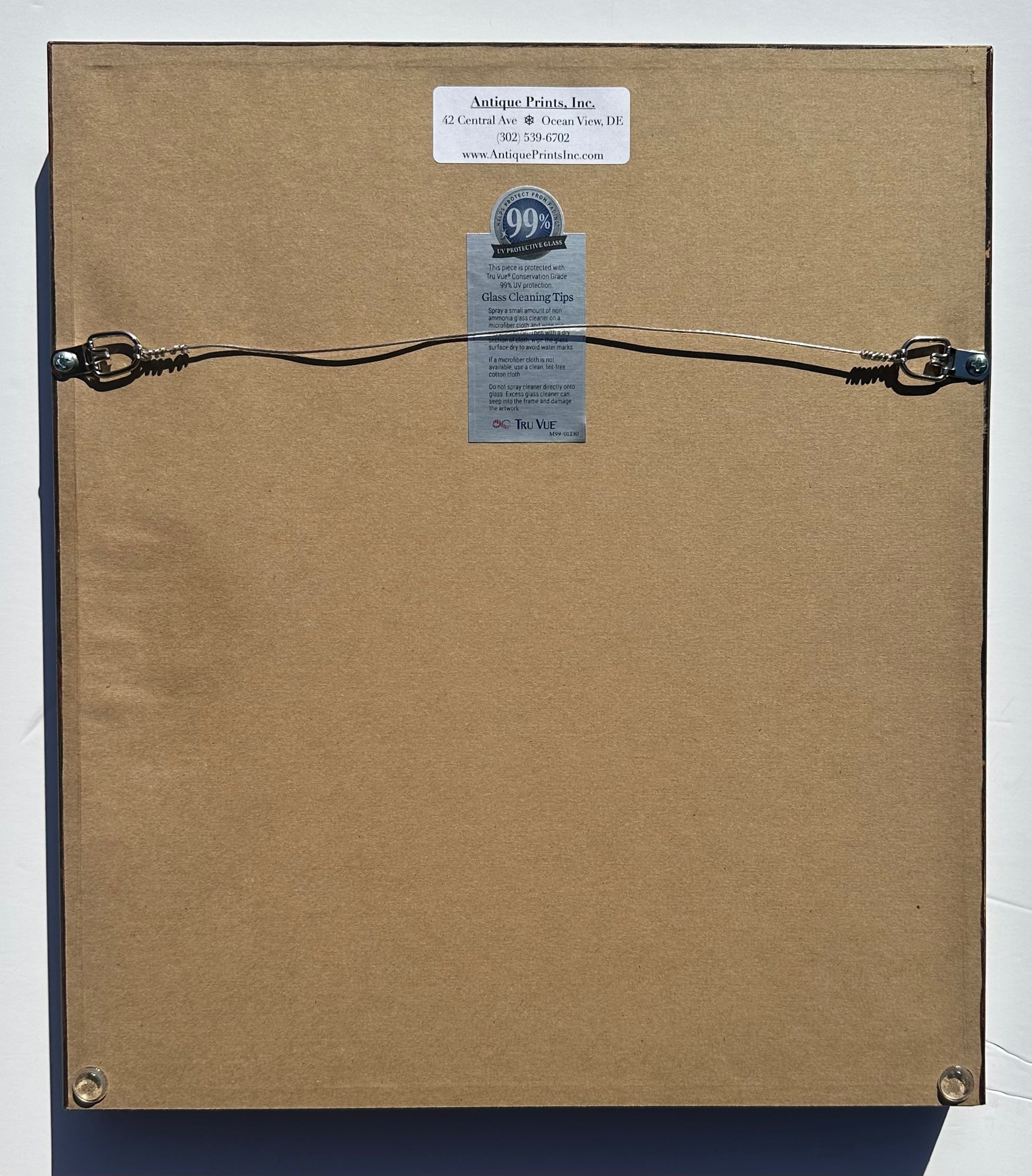 Custom framed with UV-resistant glass and framed with a specialized moulding, called artifact by Larsen Juhl. Dimensions: 12.5 x 15”