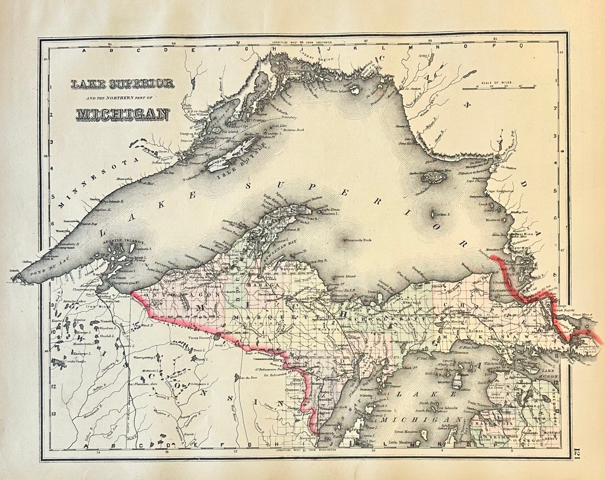 Michigan & Lake Superior Original Engraving by Samuel Mitchell, 1863