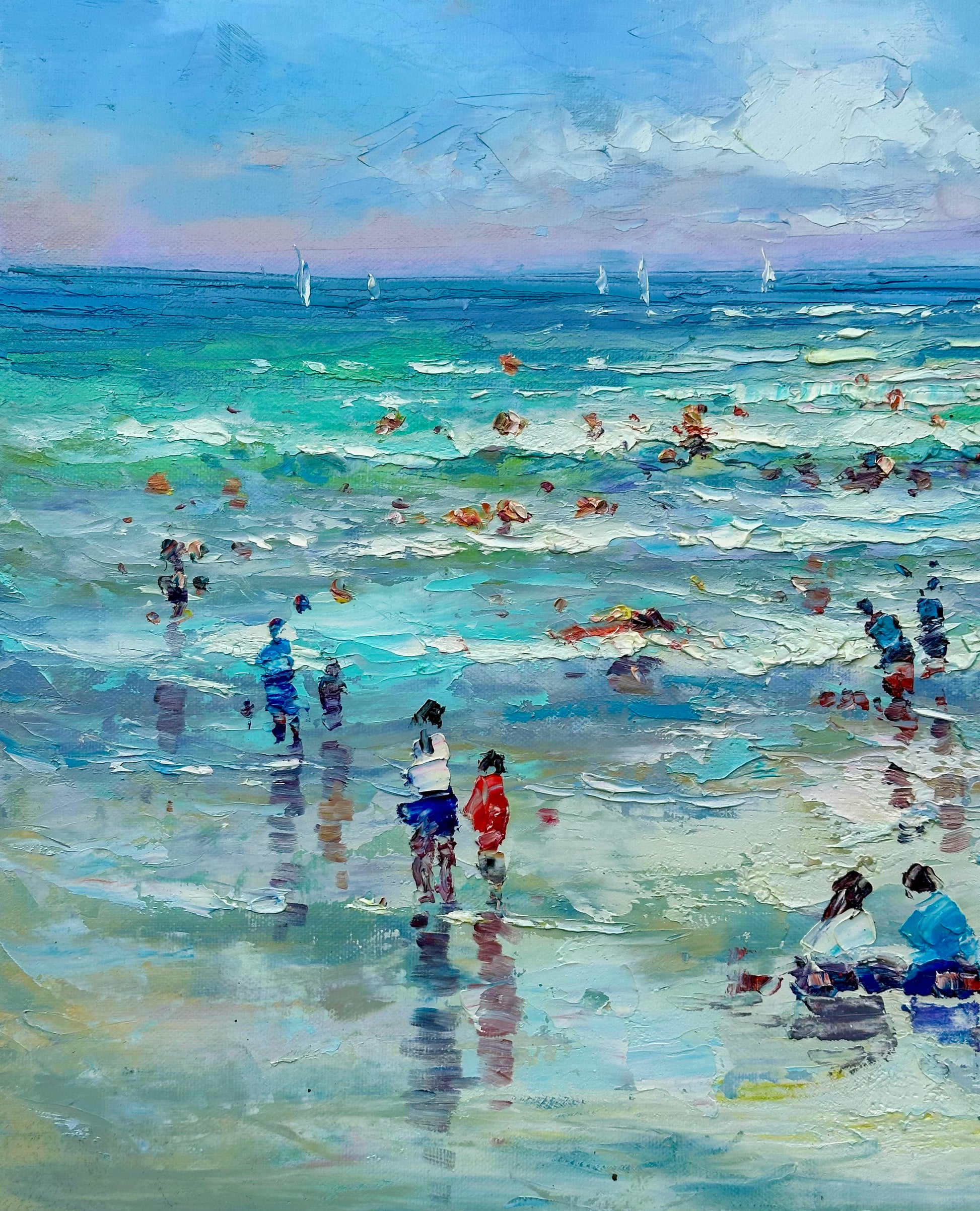 Modern Coastal Beach Seascape Sunset Oil Painting on Canvas, Unstretched, by J. Morgan
