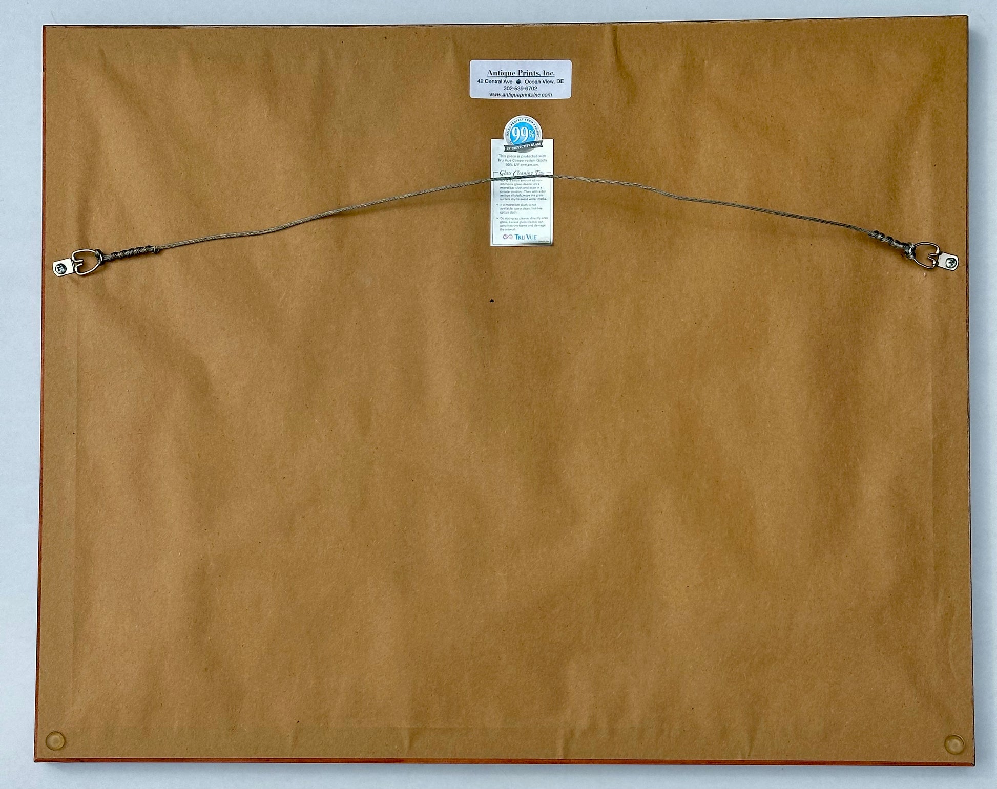 Finely detailed and rare map of America features a decorative cartouche and a unique compass rose, circa 1769. It is particularly notable for its expansive depiction of the Mer de L'Ouest, or "Sea of the West," which is illustrated as a vast sea, comparable in size to the Mediterranean, extending from the then-known Strait of Juan de Fuca. California is portrayed as an island. The map was published by Étienne-André Philippe de Prétot, a royal censor and professor of history at the Royal Academy of Science in Paris. It is beautifully framed, with a linen and marblized mat, and protected by UV glass.