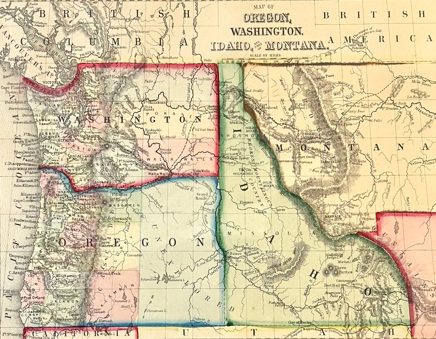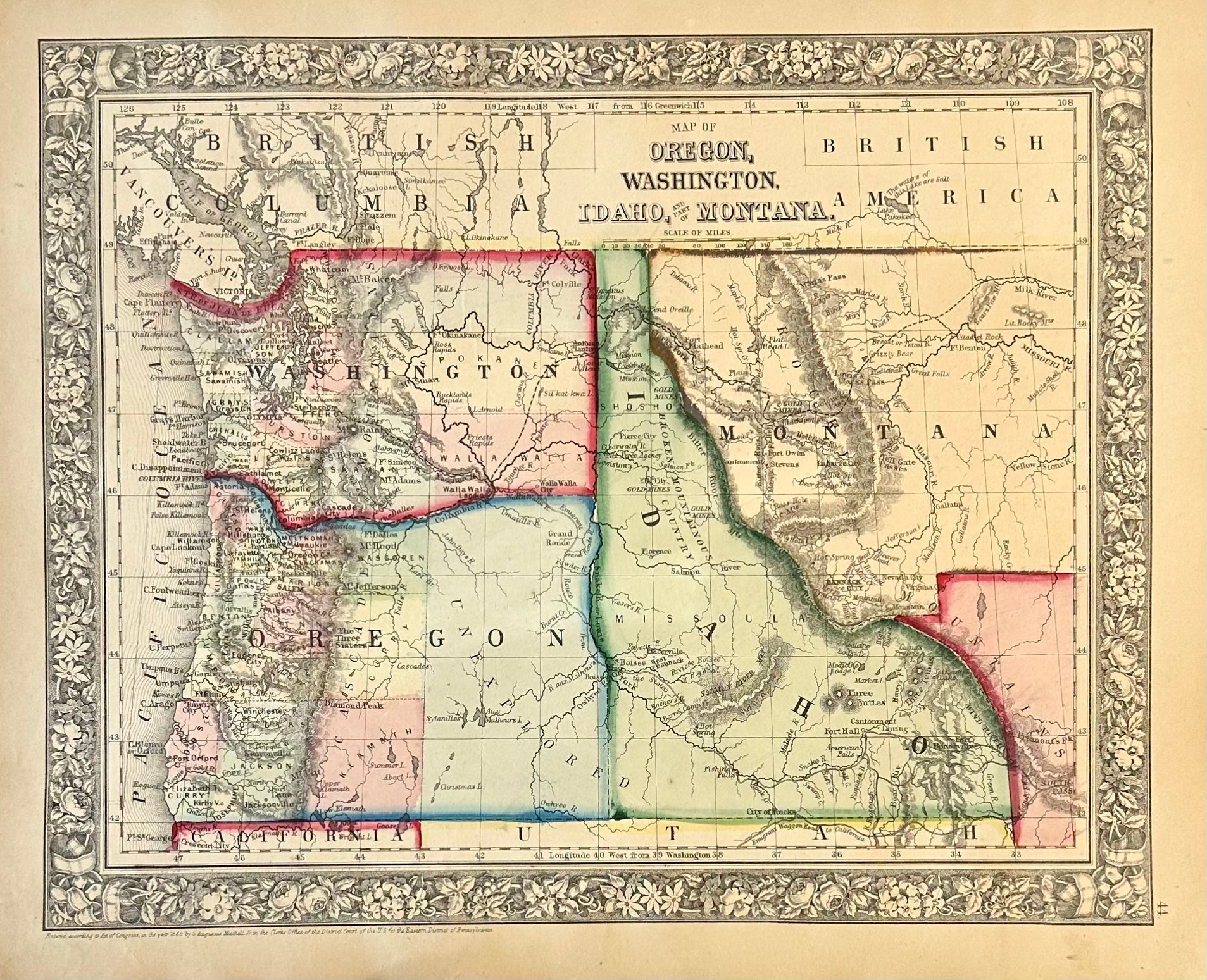 Oregon, Washington, Idaho & Montana Original Engraving by Samuel Mitchell, 1863