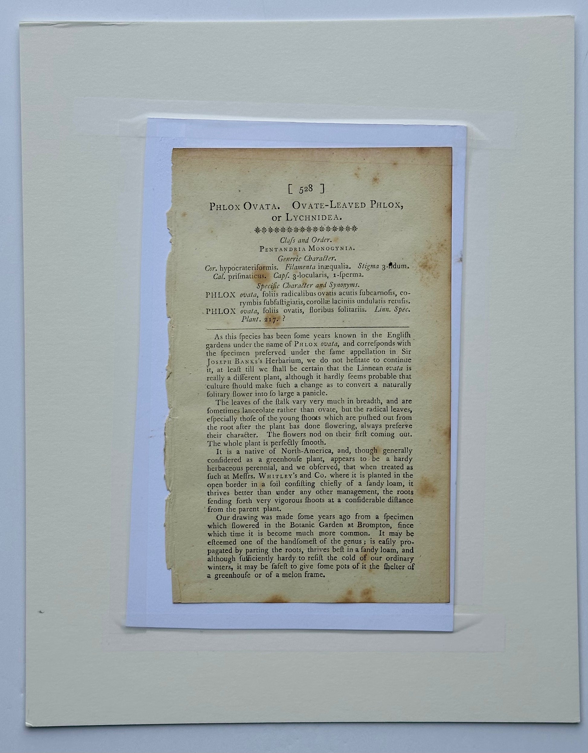 Original copper engraving by William Curtis. Curtis began publication of the Botanical Magazine in February 1787 and continued almost without interruption for 160 years. The plates are known for their fine detail and delicate hand coloring, during a period of time when detailed botanical illustrations were often one of the only ways to record and understand the vast diversity of plant life.