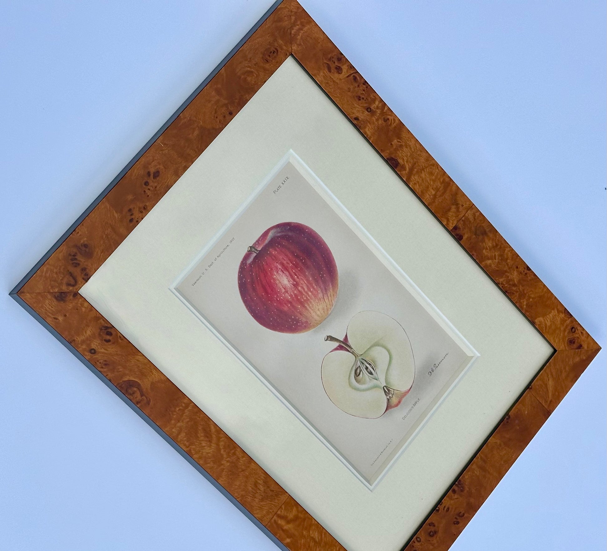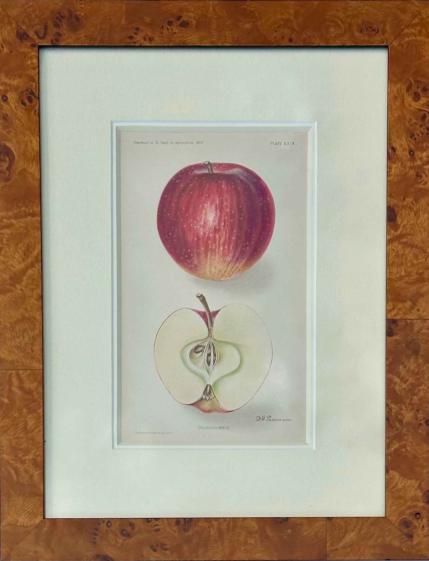 Original chromolithograph of red delicious apple and it's cross section by Deborah G. Passmore from the 1903 Yearbook Dept of Agriculture.