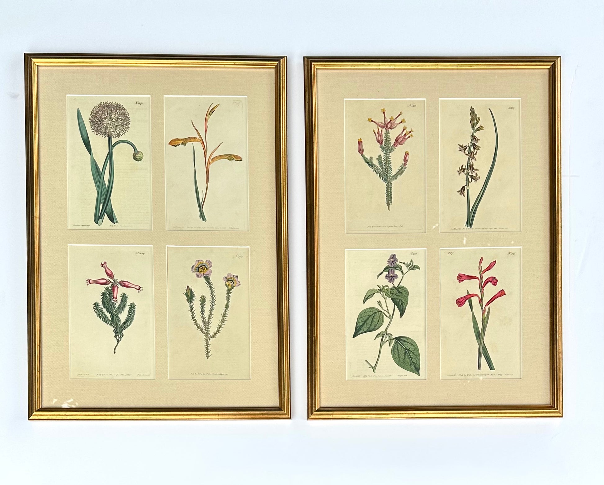 Original copper engravings by William Curtis, 1806. Custom framed with UV resistant glass and a gold frame.