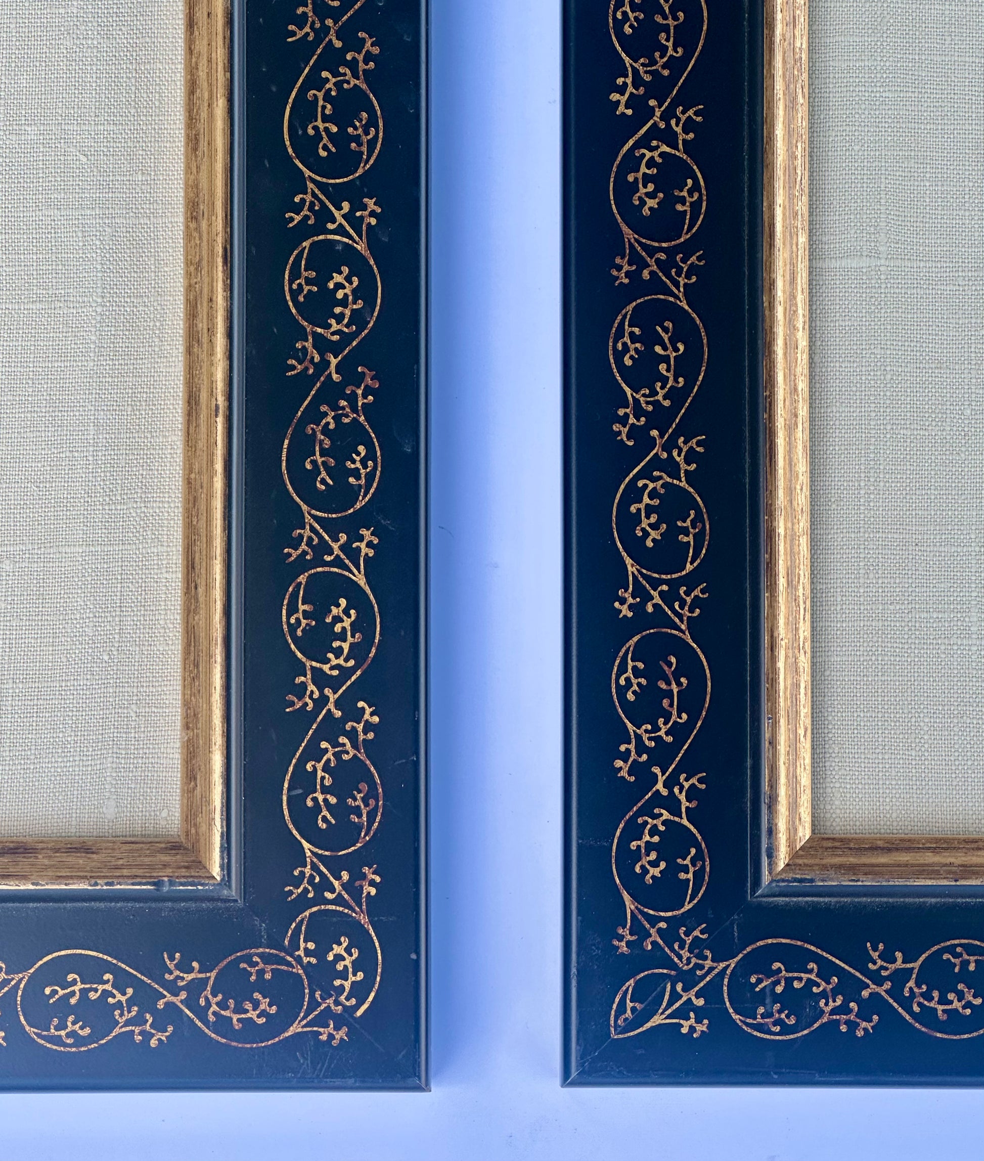 Custom framed in a thick neutral mat and a black wood ornate frame. Dimensions: 20 x 38” set, 17.5 x 20” each print. In great condition - light foxing on leghorn print on border.
